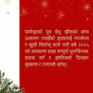 इतिहास साक्षी छ, मानव समुदायले आफ्ना देवता, अगुवा अनि सम्माननीय व्यक्तित्वहरूको जन्मदिन व्यापक उत्साह अनि सद्भावका साथ मनाउने गर्दछन् । चाहे त्यो भगवान् कृष्ण होउन्, बुद्ध, गुरु नानक होउन् या पैगम्बर मोहम्मद । आज भने इसाई धर्मका प्रवर्तक जिजस अर्थात् प्रभु येशुको जन्मदिन हो ।