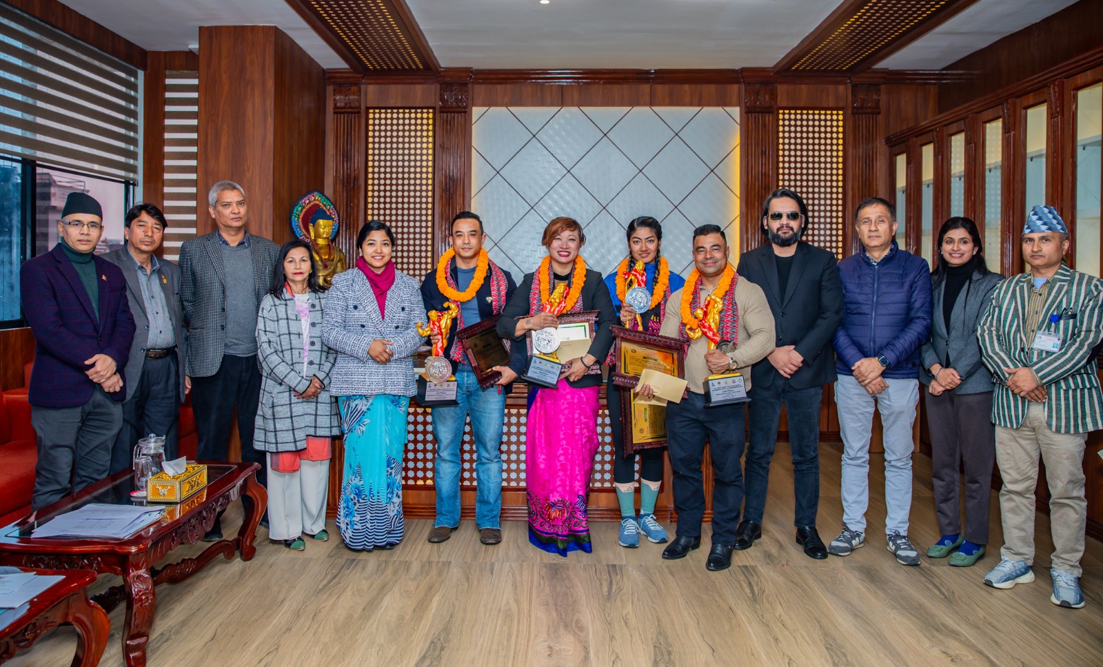 शारीरिक सुगठन प्रतियोगितामा रजत पदक विजेताहरूलाई काठमाडौँ महानगरपालिकाको नगद सहित सम्मान